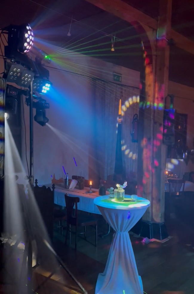 Wir besprechen Ihre musikalischen Vorlieben und planen gemeinsam die passende Licht- und Soundtechnik.